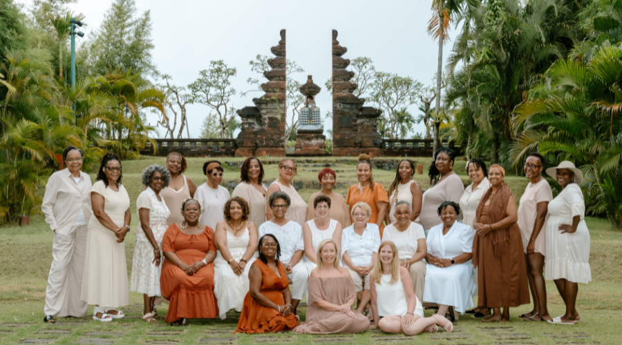 Our latest trip to Bali in 2025 featured our biggest group yet; 23 lucky ladies who were eager to explore another part of our extraordinary planet. Wrangling such a big group for a professional photo was no easy feat but Nabila Baharun Photography captured the essence of our wonderful ladies perfectly. Given the large group, we wanted to limit the waiting around for those not in front of the lens so we conducted our private professional photo shoot over three different locations. We kicked things off with casual individual photos in our luxury villas at The Layar Seminyak before changing into our ‘Naturally Neutral’ outfits in keeping with 2025’s theme. Group photos on Bali’s Petitenget Beach followed and pre-dinner photos in the tranquil gardens at The Long Table capped off the session.