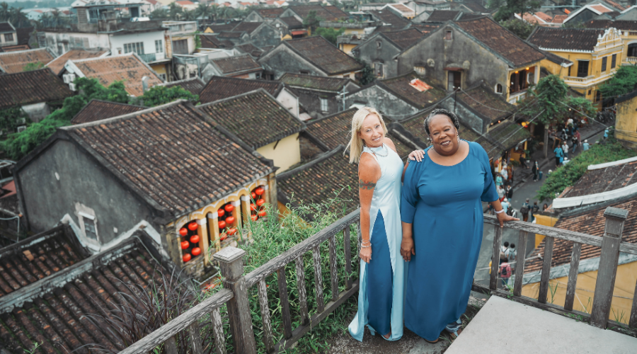After a long 5 year hiatus due to the Covid pandemic RAWRA was back in the saddle with a new trip to Asia in 2024. Our 17 travellers were thrilled with our itinerary that included Seoul in South Korea, Phnom Penh and Siem Reap in Cambodia and Hoi An in Vietnam. Robin & Allison first met Trung from Hoi An Photographer in 2023 when they visited as part research trip and part relaxing getaway. We started with a few photos in the grounds of our fabulous hotel the Hoi An Historic in keeping with our ‘Bright White’ theme before changing in our custom made Ao Dai from Hoi An’s most trusted tailor Bebe. Hoi An’s world famous old town provided the perfect backdrop for Vietnam’s national dress and we think we rocked it!