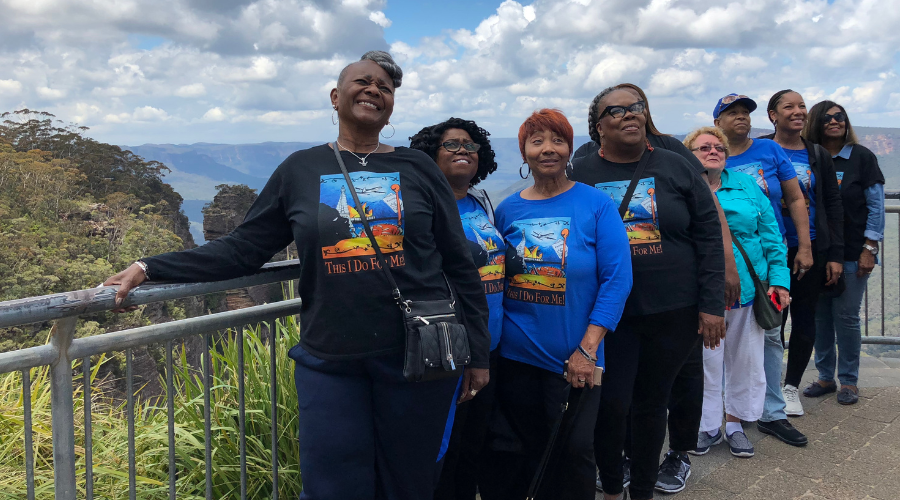 Sydney is Allison’s home town and was RAWRA’s very first trip in 2017. It’s hard to believe that is been nearly a decade since this crazy adventure began. Our group of eight travellers spent 10 fabulous days exploring stunning Sydney and it’s surrounds. Our professional photographer was Colin Nixon Photography. Colin is Allison’s cousin and he accompanied the group to the beautiful Blue Mountains on Sydney’s outskirts to capture the group on film with the iconic Three Sisters in the background. We hadn’t yet fully embraced colour theming RAWRA photo shoots on our first trip, but we did make sure the ladies modeled their matching This I Do For Me t-shirts!